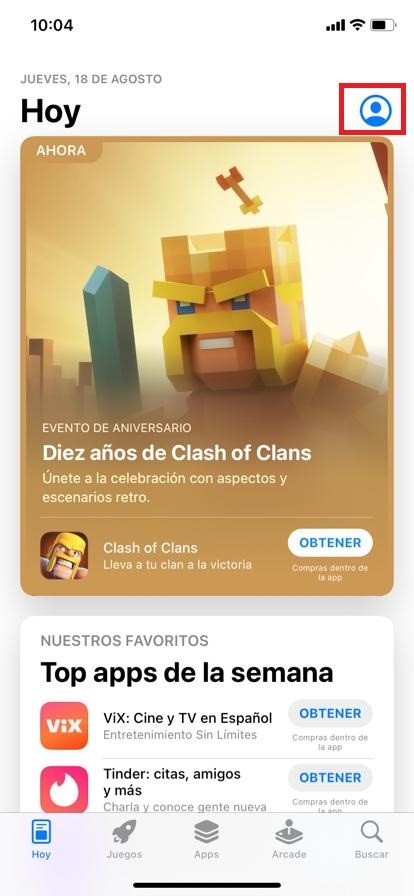 2. Tap the profile icon at the top of the screen.