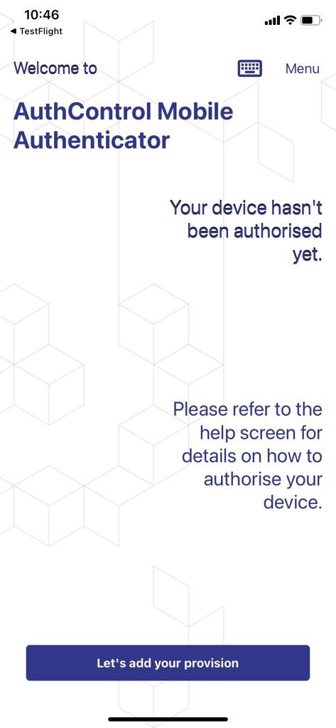 Step 3: Launch the AuthControl Mobile Authenticator (AMA) app, once on the home page of the app, click on the Menu option located at the top right of the screen (see figure 18).